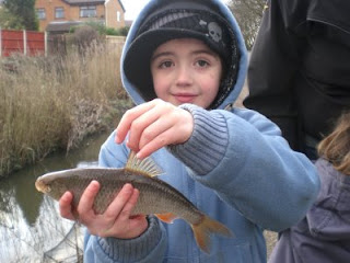 As i was tackling up, Tony and his two youngsters came walking by and its wasn’t too difficult to persuade Tony to have a few casts with my gear. He took a lovely roach of about 12oz before i cajoled his seven year old son Logan into having a go. Once Logan had caught a fish there was no stopping him, like father like son “one more cast dad please please just one more” then after that ” another one dad, just one more”.