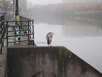 Nothing doing on the ship canal, so another short drive took us over to Salford Quays- which as you can see had a fair covering of ice.