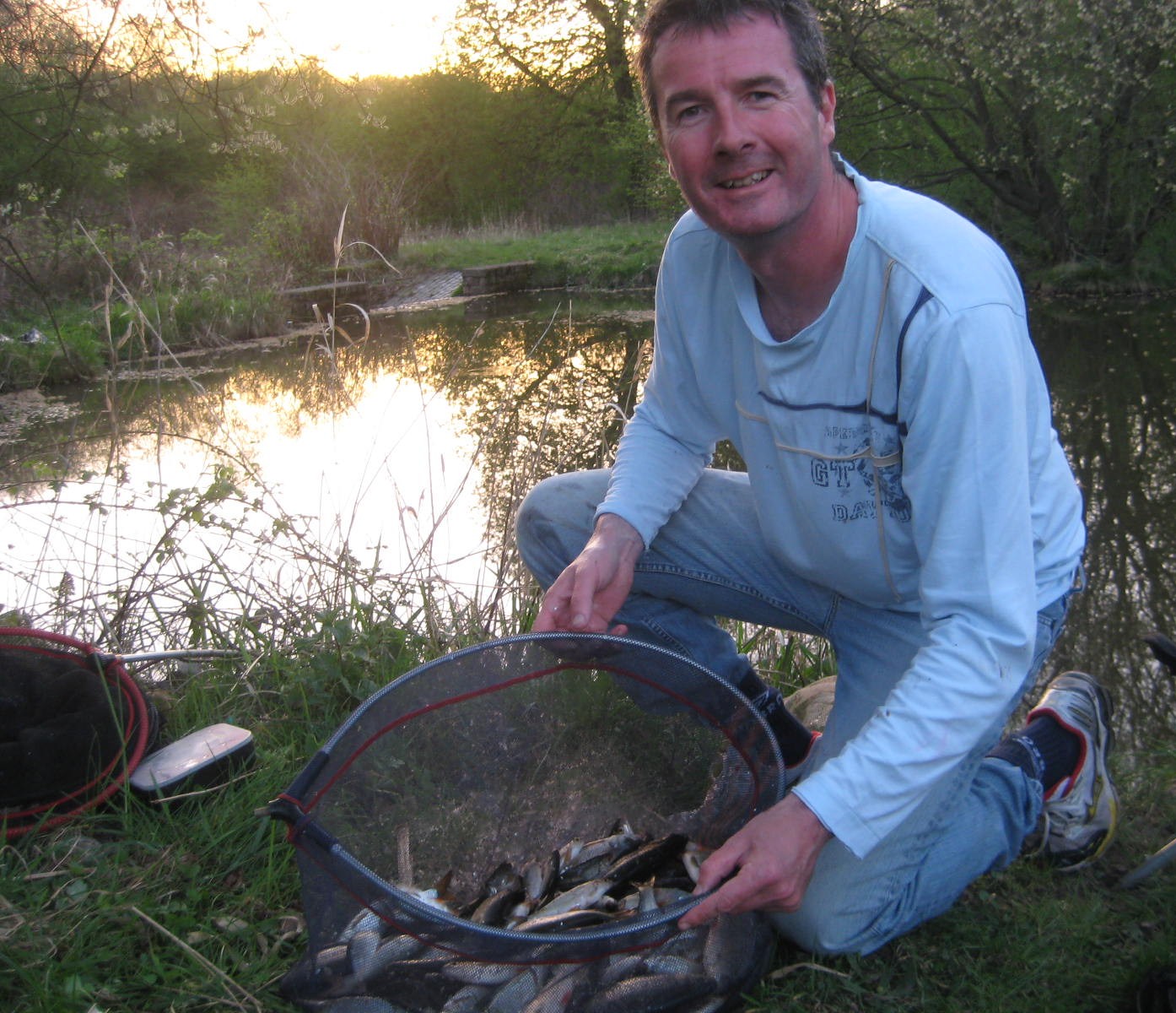 I spent the afternoon at Kingfisher lodges enjoying the lovely spring sunshine. There were lots of fish topping when I arrived, so I set up to fish up in the water and used a top 2 + 2 sections of pole. I’ve had a few people tell me that they’ve struggled on Kingfisher in the past, but every time i go there it doesn’t seem to be much of a problem getting the fish on the feed. The key is to feed a couple of maggots (3 or 4) each cast, a small fine wire hook, a light hook length and a dotted down slim 0.3gram float as many of the bites are only a slight dip of the float. If you look carefully at the photo above, you can see I also put two bands of float rubber around the red tip of the float as this helps show up the shy bites. During the winter, I will fish with the bait just touching the bottom, bulking the shot low down about 18 inches above the hook and a number 10 or 12 shot as a dropper. In summer the fish are found much higher in the water column, so instead of the usual 5ft between hook and float, I shorten up to 2 ft and spread out the number 8 shot to fish on the drop.